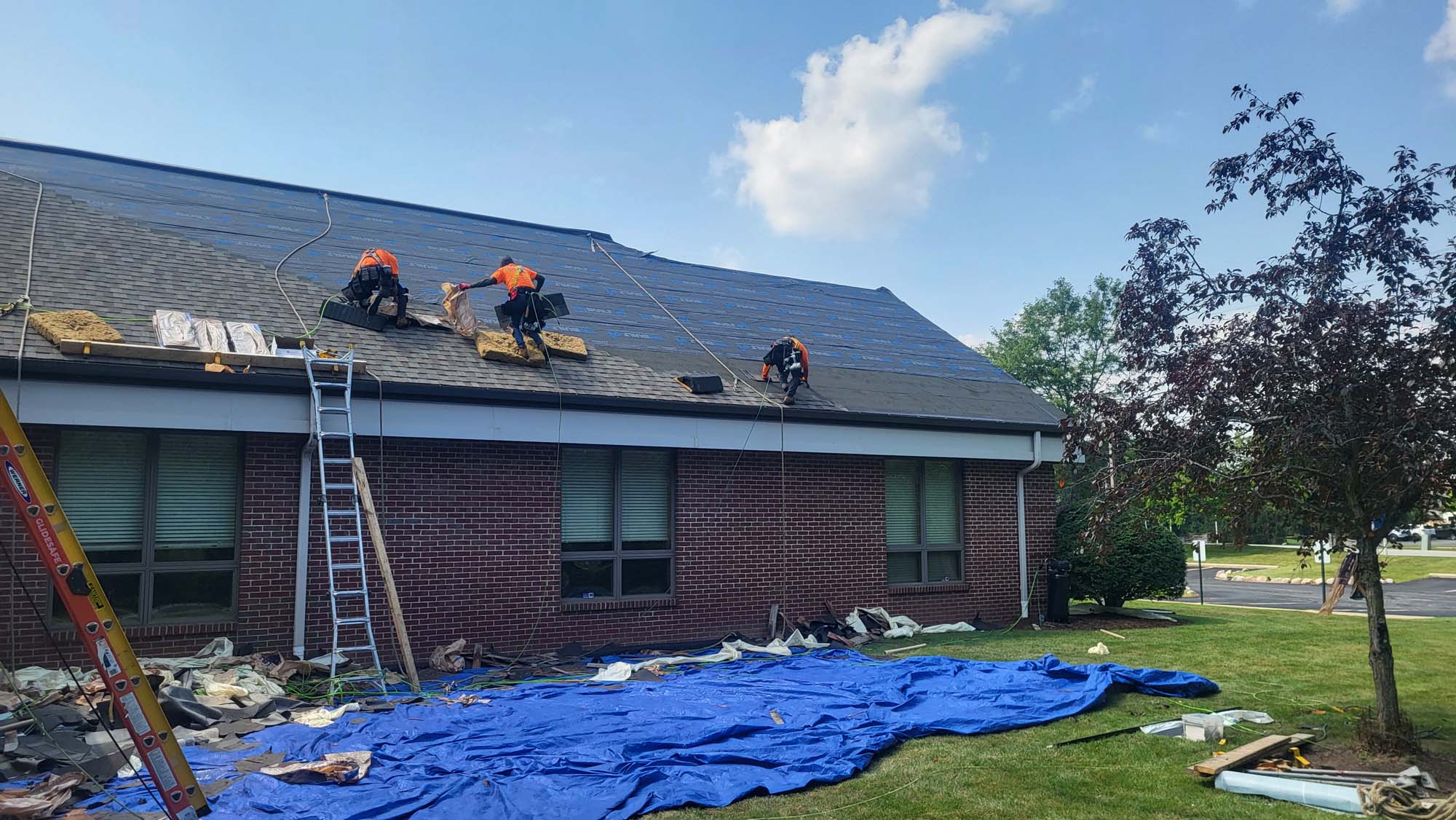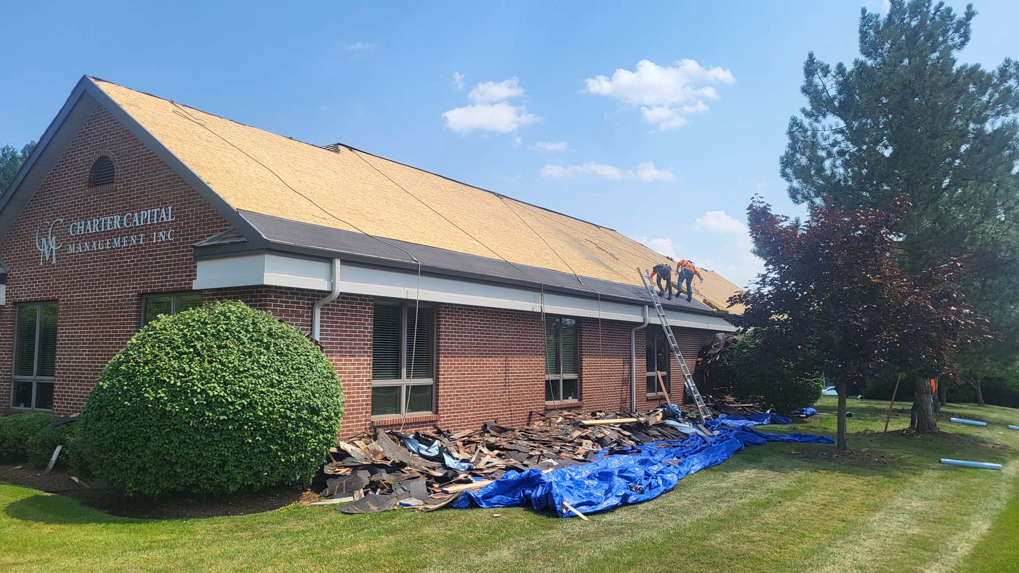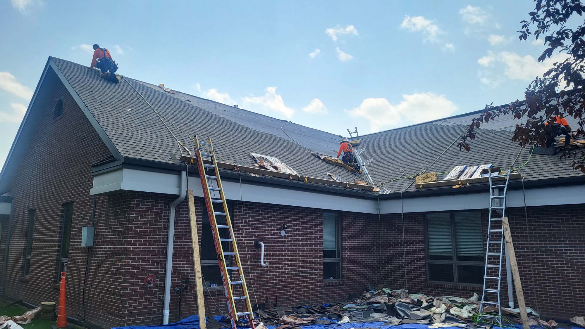 This building was a multi tenant complex with two different roof systems that were 20 plus years old. The majority of the roof was an old cedar roof and we replaced it with a Owens Corning Duration shingle The center section was a ballasted EPDM roof.