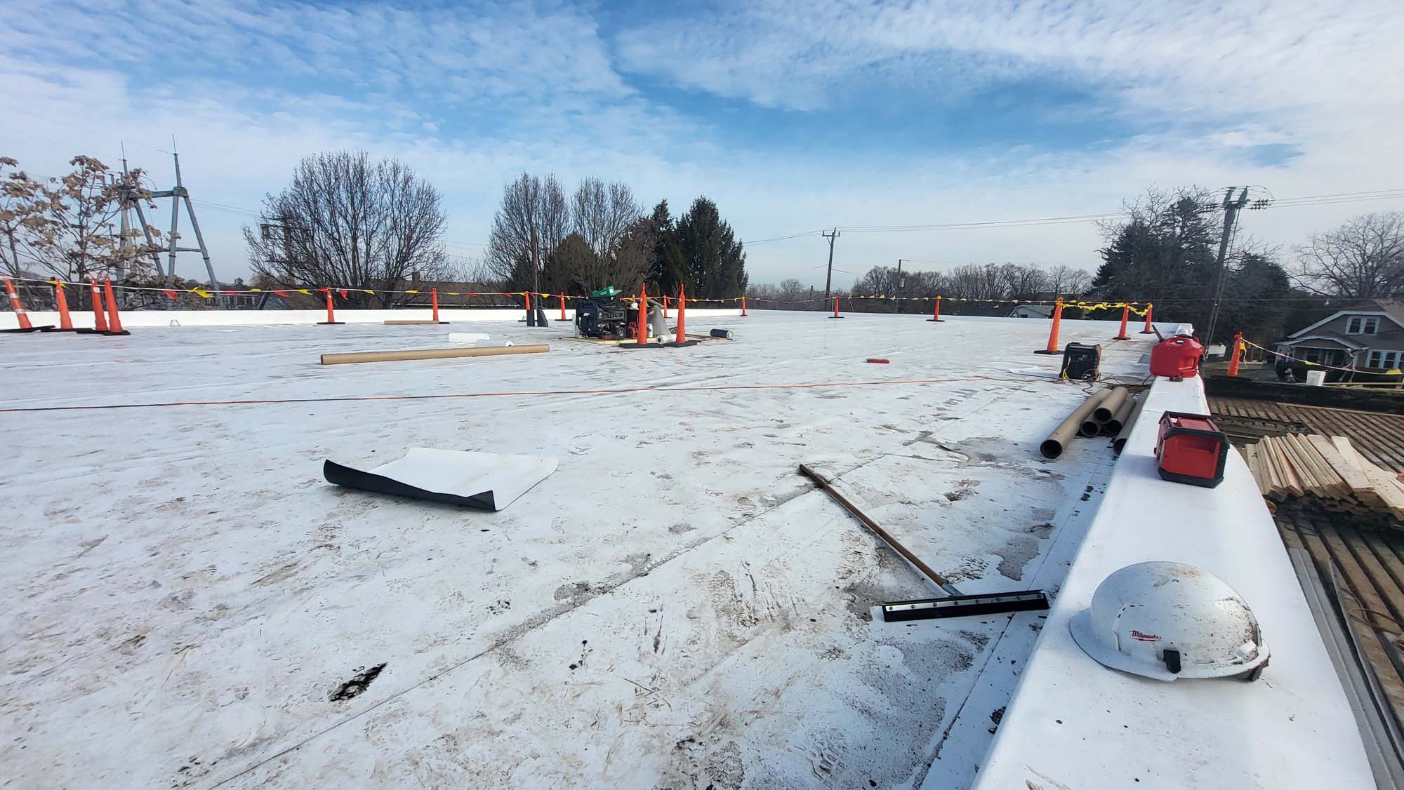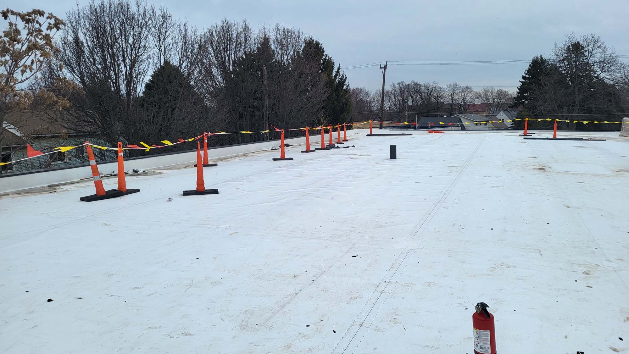 This was a building that had been abandoned for many years. There were holes in the roof and a lot of deck replacement, before we could put the new roof on. The new owners wanted a new TPO roof system with insulation to make it ready for its new use as a state of the art manufacturing facility.