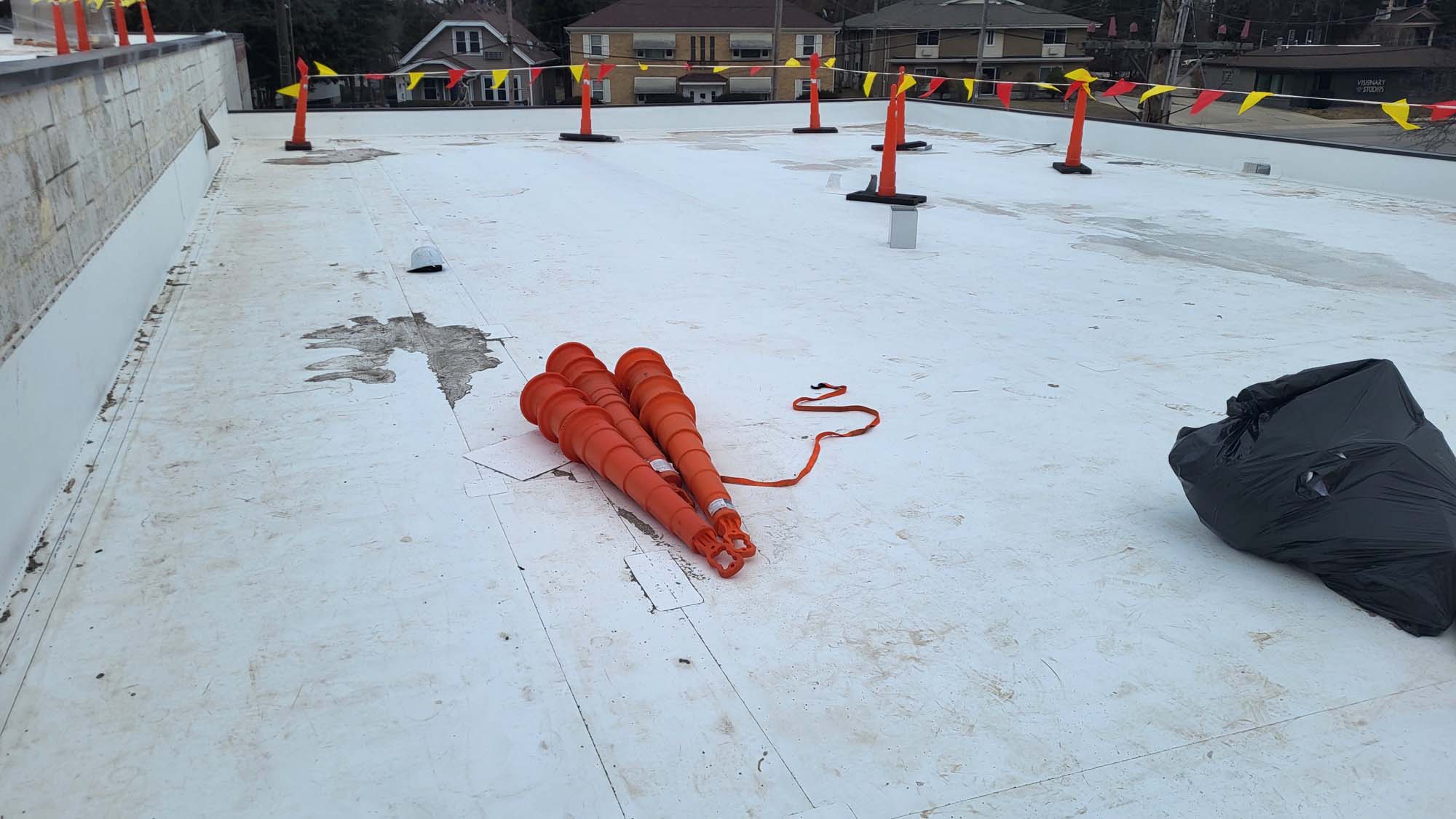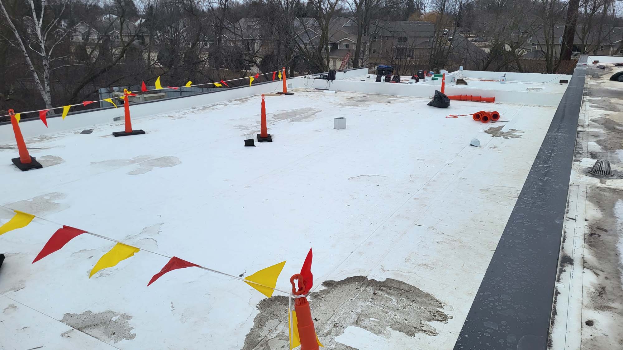 Old failing roof on an abandoned factory. This is a brand new roof and it also was getting new HVAC units and penetrations for its new use.