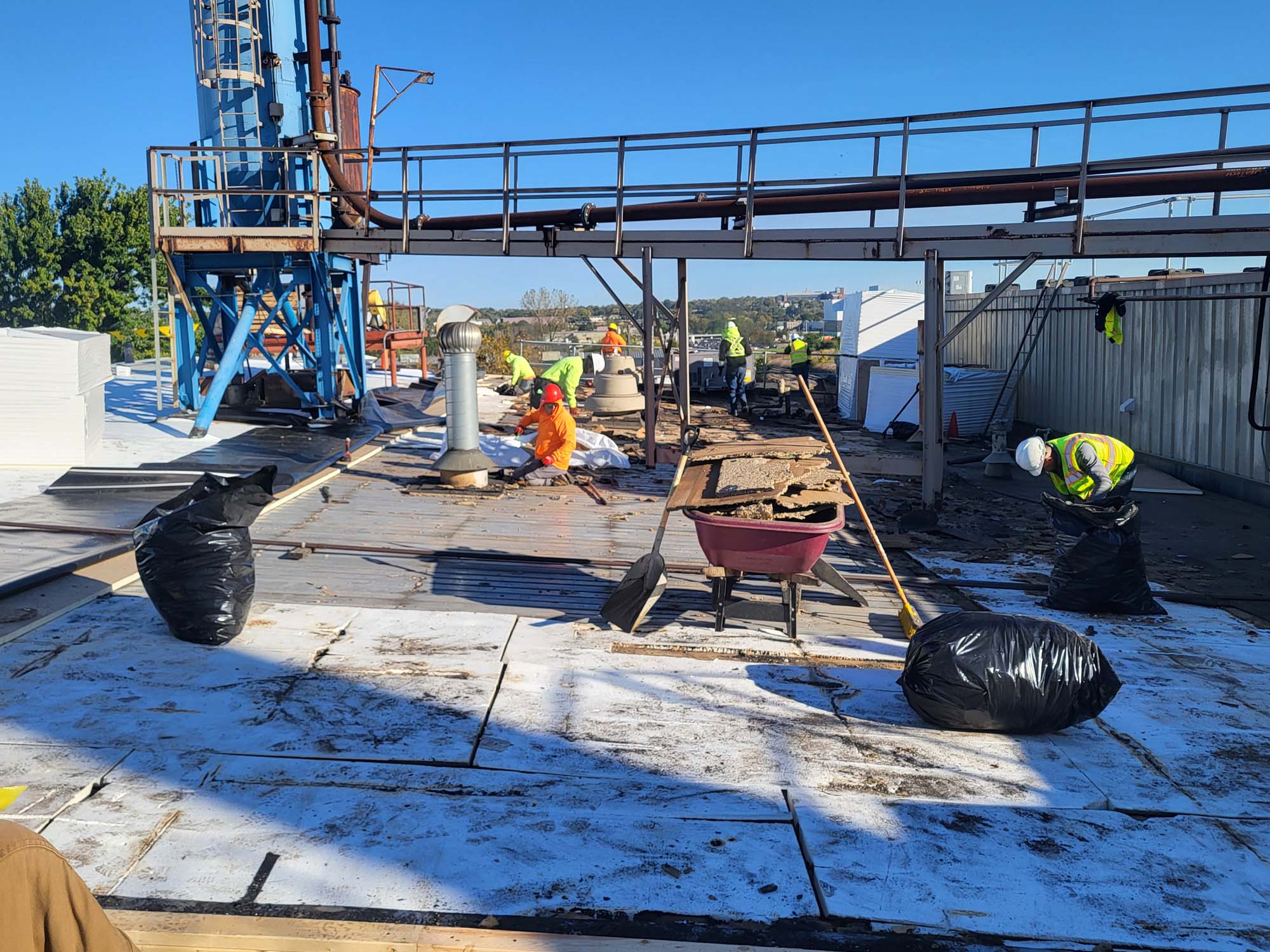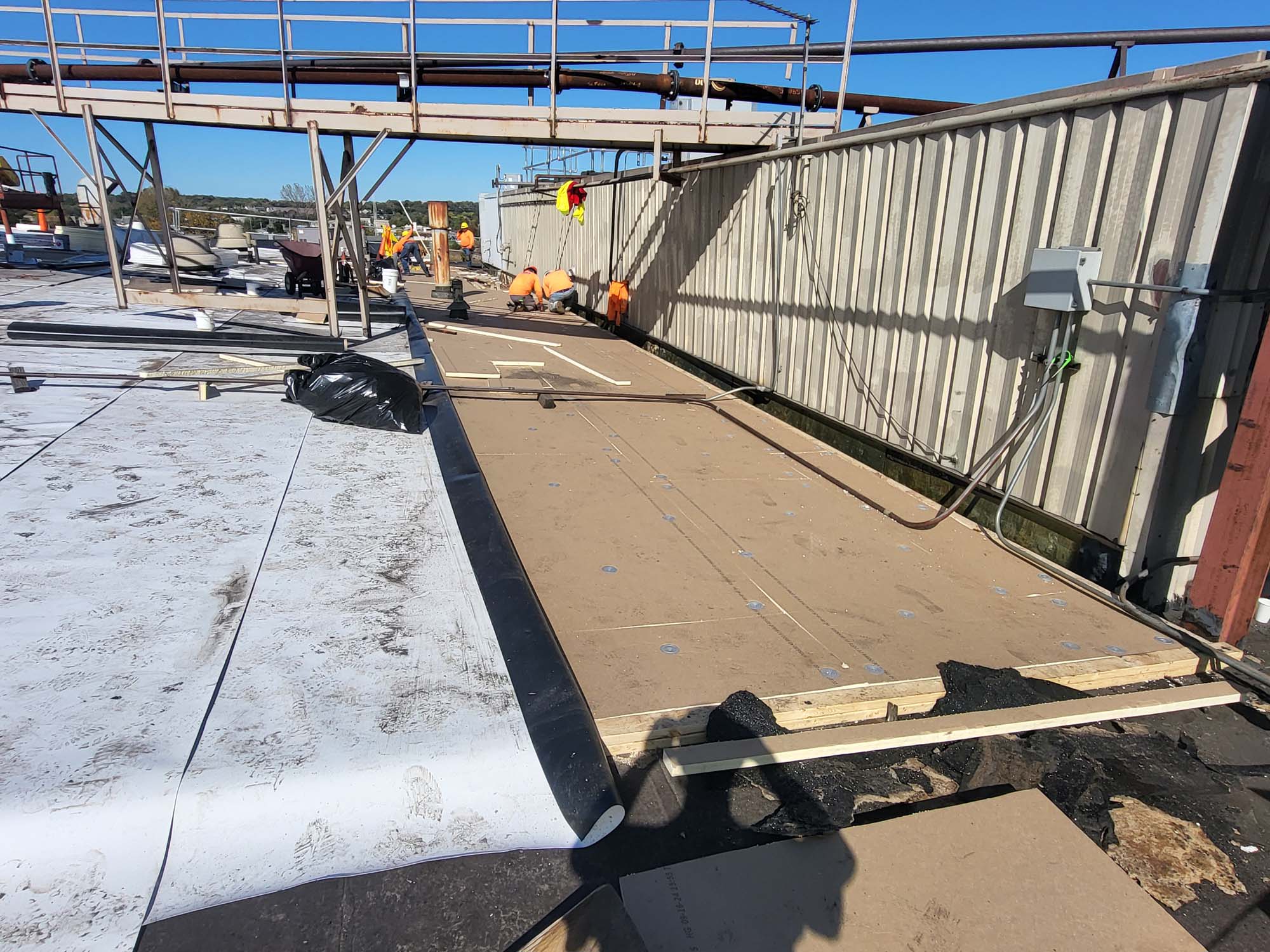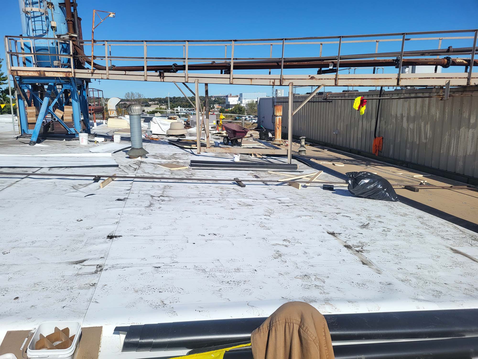 This is an active manufacturing facility that emits byproducts from the manufacturing onto the roof and it has deteriorated over time. There are also many pipes and penetrations on this roof that had to be addressed
